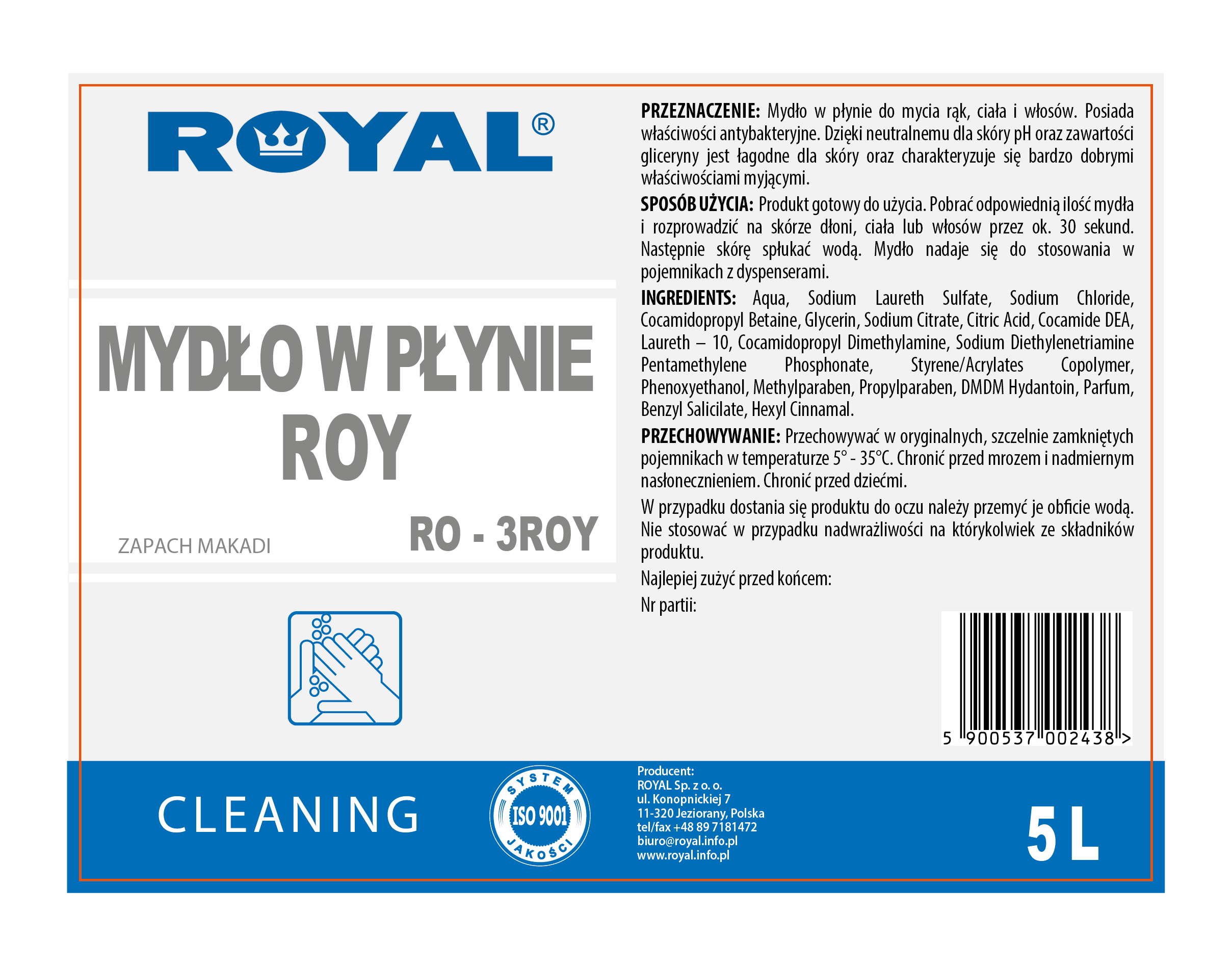- Sposób użycia: Produkt gotowy do użytku. Rozprowadzić niewielką ilość mydła, następnie spłukać wodą. Do dozowania stosować pojemniki z dispenserami.